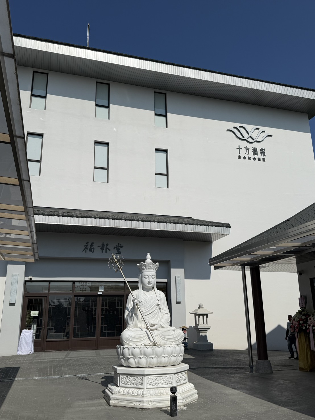 福報堂外觀以白色為主體,搭配濃灰色的中式斜屋頂,展現出一種優雅與莊重的氣質。室內裝潢採用色彩斑斕的藏傳佛教配色,傳遞出豐富而鮮明的美感,象徵著希望與生命的延續。 其他條件:佛道教, 西方教, 中式禮儀, 西式禮儀,